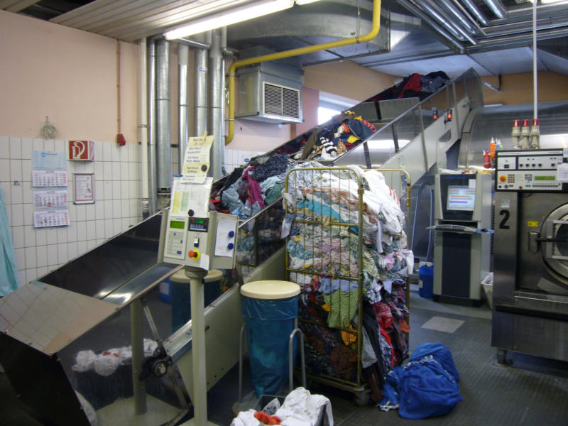 erwähnt, fallen am Tag ca. 10.000 (wöchentlich 50.000 Teile Bewohnerwäsche) zur Bearbeitung an.